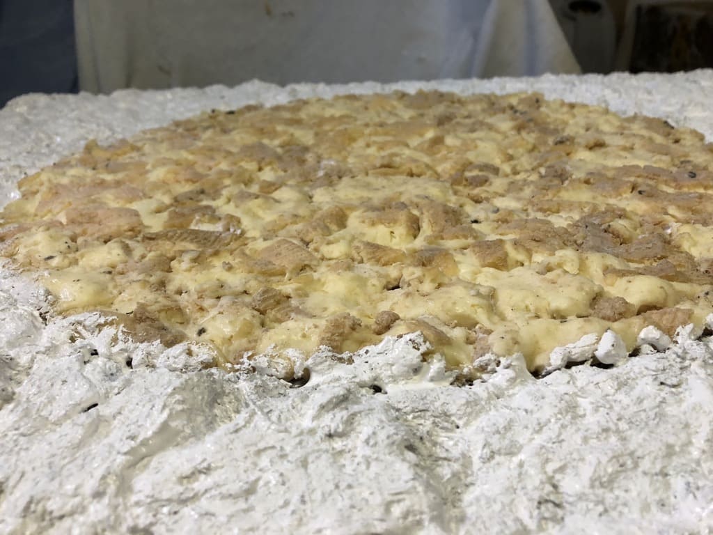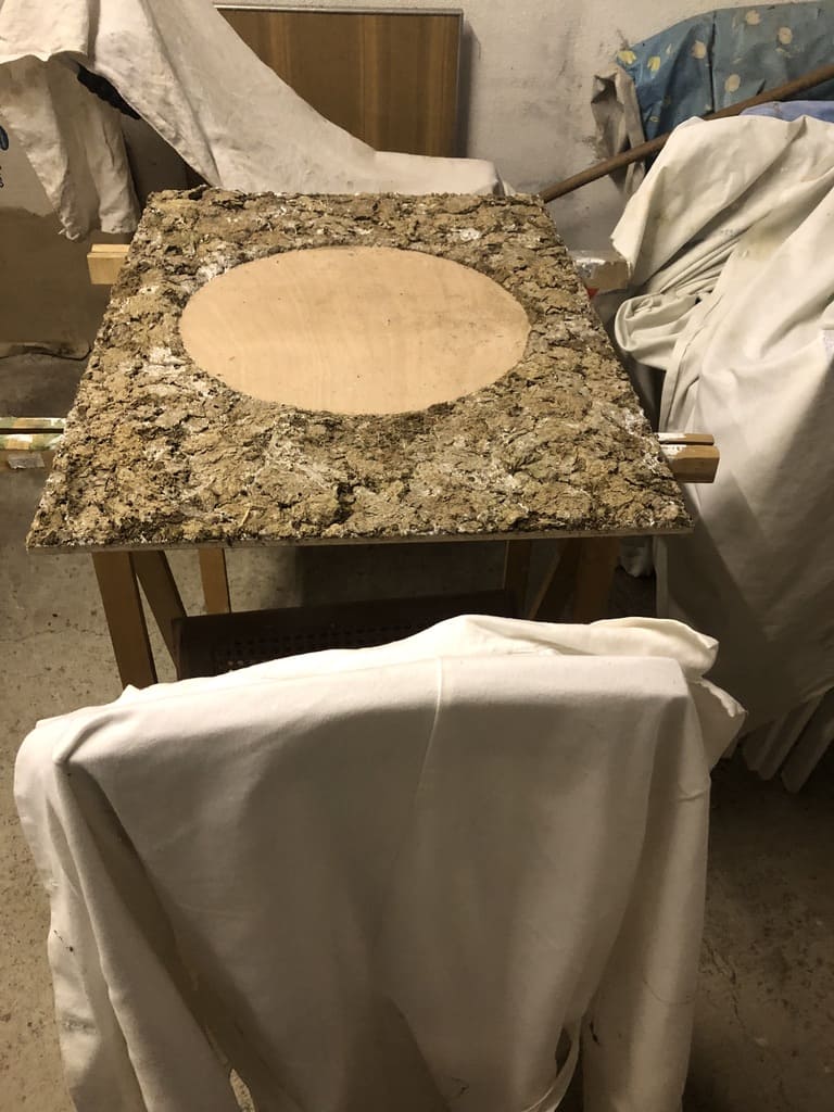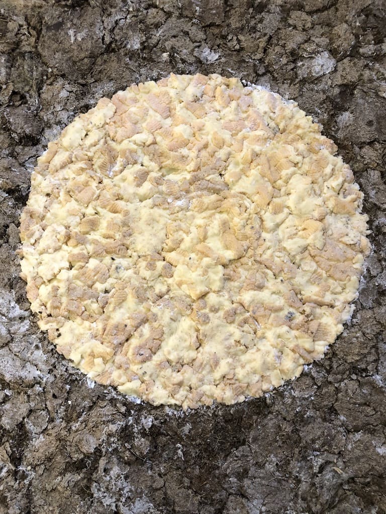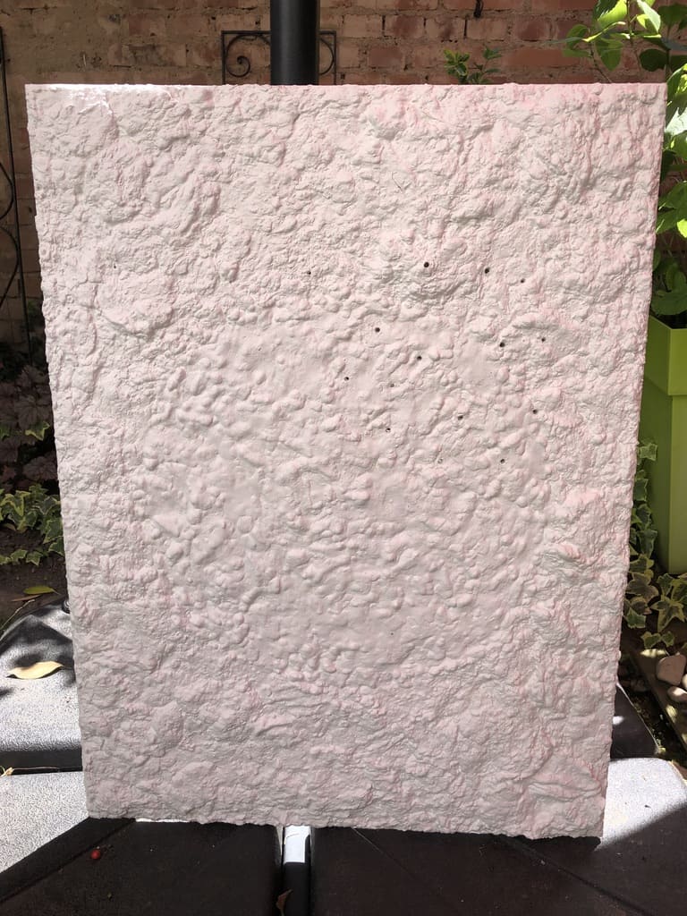 Pour mes monochromes, j’utilise trois « matériaux » naturels : de la bouse de vache, de l’herbe et du munster. Aussi, je vais non seulement récolter des bouses et de l’herbe dans les Vosges, mais je me fournis aussi en munster à Colmar.